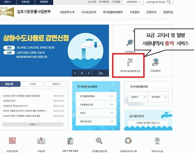 [NWS¹æ¼Û=Çѽ¸ñ ±âÀÚ]±èÆ÷½Ã´Â ¿À´Â 2025³â 9¿ù 1ÀϺÎÅÍ ¼öµµ¿ä±Ý °íÁö¼­¿Í »óÇϼöµµ »ç¿ë·á ¿ùº° ³»¿ª¼­¸¦ ¼ö¿ë°¡¿¡¼­ Á÷Á¢ ¿Â¶óÀÎÀ¸·Î Ãâ·ÂÇÒ ¼ö ÀÖ´Â ¼­ºñ½º¸¦ µµÀÔÇÑ´Ù°í ¹àÇû´Ù. ±×µ¿¾È ÀüÈ­ ½ÅûÀ» ÅëÇØ¼­¸¸ ¹ß±ÞÀÌ °¡´ÉÇßÀ¸³ª, ¡¦