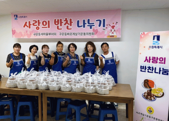 [NWS¹æ¼Û=Çѽ¸ñ ±âÀÚ]¼ö¿ø½Ã ±Ç¼±±¸ ±¸¿îµ¿ ¹Ù¸£°Ô»ì±â¿îµ¿À§¿øÈ¸´Â Áö³­ 27ÀÏ ¡®»ç¶ûÀÇ ¹ÝÂù ³ª´®' ºÀ»çȰµ¿À» ½Ç½ÃÇß´Ù. ÀÌ ³¯ ºÀ»çȰµ¿¿¡´Â ¹Ù¸£°Ô»ì±â¿îµ¿À§¿øÈ¸ ȸ¿ø 10¸íÀÌ ¹Ý°èÅÁ, °íµî¾îÀÚ¹Ý Á¶¸², ¹«»ýä, ÄáÀÚ¹Ý µîÀÇ ¹ÝÂùÀ»¡¦