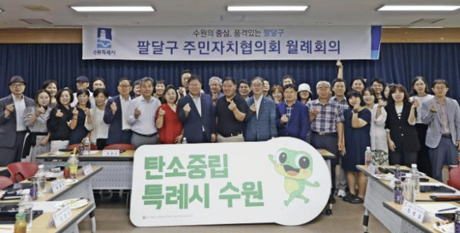 [NWS¹æ¼Û=Çѽ¸ñ ±âÀÚ]¼ö¿ø½Ã ÆÈ´Þ±¸´Â Áö³­ 26ÀÏ Çà±Ãµ¿ ÇàÁ¤º¹Áö¼¾ÅÍ ´ëȸÀǽǿ¡¼­ °¢ µ¿ ÁÖ¹ÎÀÚÄ¡ ȸÀå°ú »ç¹«±¹Àå ¹× Çà±Ãµ¿ ´ÜüÀå µî 30¿©¸íÀÌ Âü¼®ÇÑ °¡¿îµ¥ ÆÈ´Þ±¸ ÁÖ¹ÎÀÚÄ¡ÇùÀÇȸ 8¿ù ¿ù·ÊȸÀǸ¦ °³ÃÖÇß´Ù. À̳¯ ȸÀÇ´Â ¼ö¿ø½Ã¡¦