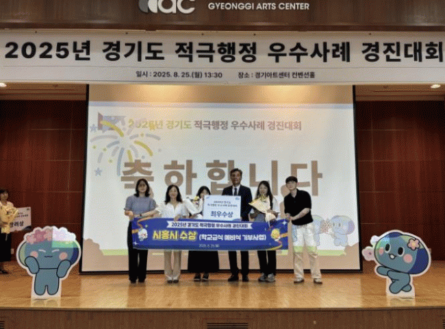 [NWS¹æ¼Û=Çѽ¸ñ ±âÀÚ]½ÃÈï½Ã´Â Áö³­ 8¿ù 25ÀÏ °æ±â¾ÆÆ®¼¾ÅÍ ÄÁº¥¼ÇȦ¿¡¼­ ¿­¸° ¡®2025³â °æ±âµµ Àû±ØÇàÁ¤ ¿ì¼ö»ç·Ê °æÁø´ëȸ¡¯¿¡¼­ ÃÖ¿ì¼ö»óÀ» ¹Þ¾Ò´Ù°í ¹àÇû´Ù. °æÁø´ëȸ´Â µµ¹Î ºÒÆí ÇØ¼Ò¿Í °øÁ÷¹®È­ Çõ½ÅÀ» À̲ö ¿ì¼ö»ç·Ê¸¦ ¹ß±¼¡¤°ø¡¦
