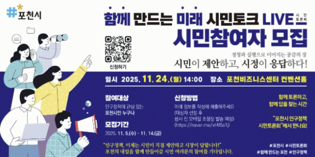 [»çȸ] Æ÷õ½Ã, 'ÇÔ²² ¸¸µå´Â ¹Ì·¡, ½Ã¹ÎÅäÅ© ¶óÀ̺ê(LIVE)' Âü¿©ÀÚ ¸ðÁý |2025. 11.06