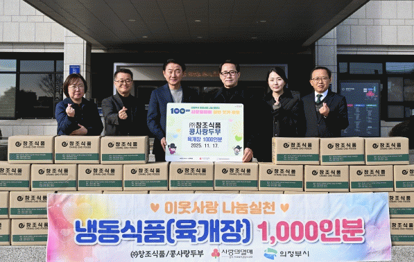 [NWS¹æ¼Û=Çѽ¸ñ ±âÀÚ]ÀÇÁ¤ºÎ½Ã´Â 11¿ù 17ÀÏ ¢ßâÁ¶½ÄǰÀÌ ³Ãµ¿½Äǰ(À°°³Àå) 1õÀκÐ(550¸¸ ¿ø »ó´ç)À» ¼Û»ê¡¤½Å°î±Ç¿ª¿¡ ±âºÎÇÏ¸ç ¡®100Àϰ£ »ç¶û¸±·¹ÀÌ ¹èÅÏ Àձ⡯ ¿¡ µ¿ÂüÇß´Ù°í ¹àÇû´Ù. ¢ßâÁ¶½ÄǰÀº 1998³â ¼³¸³ ÀÌÈÄ ²ÙÁØÇÑ ³ª¡¦