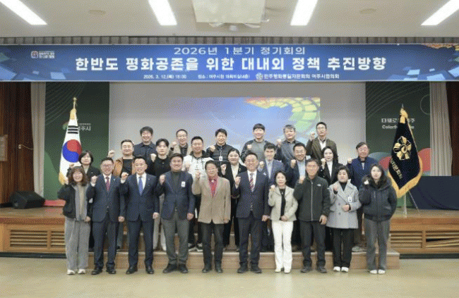 [NWS¹æ¼Û=Çѽ¸ñ ±âÀÚ]¹ÎÁÖÆòÈ­ÅëÀÏÀÚ¹®È¸ÀÇ ¿©ÁÖ½ÃÇùÀÇȸ´Â Áö³­ 3¿ù 12ÀÏ 16½Ã¿¡ ¿©ÁÖ½Ãû ´ëȸÀǽǿ¡¼­ ÀÚ¹®À§¿ø 24¸íÀÌ Âü¼®ÇÑ °¡¿îµ¥ 2026³â 1ºÐ±â Á¤±âȸÀǸ¦ °³ÃÖÇß´Ù. À̹ø Á¤±âȸÀÇ¿¡¼­´Â ¡®Çѹݵµ ÆòÈ­ °øÁ¸À» À§ÇÑ ´ë³»¿Ü Á¤¡¦
