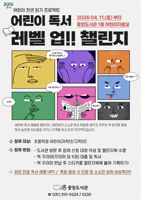 [NWS¹æ¼Û=Çѽ¸ñ ±âÀÚ]½ÃÈï½Ã Áß¾Óµµ¼­°üÀº ¿À´Â 4¿ù 11ÀϺÎÅÍ ÃʵîÇлýÀ» ´ë»óÀ¸·Î µ¶¼­½À°ü Çü¼ºÀ» À§ÇÑ ¡®¾î¸°ÀÌ µ¶¼­ ·¹º§¾÷ 縰Áö¡¯¸¦ ¿¬Áß »ó½Ã ¿î¿µÇÑ´Ù. À̹ø »ç¾÷Àº °æ±âµµ ¡®¾î¸°ÀÌ Ãµ ±Ç Àб⡯ »ç¾÷ÀÇ ÀÏȯÀ¸·Î, ²ÙÁØÇÑ µ¶¡¦