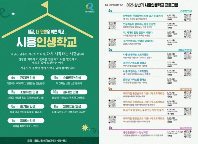 [NWS¹æ¼Û=Çѽ¸ñ ±âÀÚ]½ÃÈï½Ã´Â Áö³­ 4¿ù 7ÀÏ ½ÃÈïABCÇູÇнÀŸ¿î ÁöÇý°ü¿¡¼­ ¡®½ÃÈïÀλýÇб³¡¯ ù ÇÁ·Î±×·¥À» ¿î¿µÇϸç ÁßÀå³â »ý¾Ö µµ¾àÀ» À§ÇÑ º»°ÝÀûÀÎ ¿©Á¤À» ½ÃÀÛÇß´Ù. ¡®½ÃÈïÀλýÇб³¡¯´Â ½ÃÈï½Ã ÁßÀå³â(40~60´ë) Àα¸°¡ ÀüüÀÇ¡¦