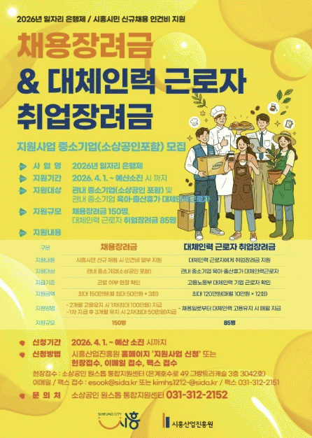 [»çȸ] ½ÃÈï½Ã '2026³â ÀÏÀÚ¸® ÀºÇàÁ¦' Âü¿©ÀÚ ¸ðÁý¡¦Áß¼Ò±â¾÷ ä¿ë Áö¿ø °­È­ |2026. 04.08