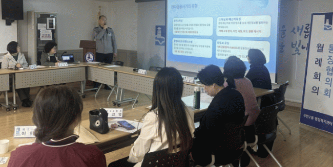[NWS¹æ¼Û=Çѽ¸ñ ±âÀÚ]¼ö¿ø½Ã ÆÈ´Þ±¸ ¿ì¸¸2µ¿´Â Áö³­ 13ÀÏ, ¿ì¸¸2µ¿ ÇàÁ¤º¹Áö¼¾ÅÍ¿¡¼­ °ü³» ÅëÀåµéÀ» ´ë»óÀ¸·Î ¡®ÀüÀÚ±ÝÀ¶»ç±â ¿¹¹æ ±³À°¡¯À» ½Ç½ÃÇß´Ù. À̹ø ±³À°Àº Áö¿ª»çȸ ³» ÀüÀÚ±ÝÀ¶»ç±â ÇÇÇØ È®»êÀ» ¹æÁöÇϱâ À§ÇØ ¸¶·ÃµÆÀ¸¸ç, Çö¡¦