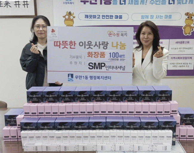 [NWS¹æ¼Û=Çѽ¸ñ ±âÀÚ]¼ö¿ø½Ã ÆÈ´Þ±¸ ¿ì¸¸1µ¿´Â Áö³­ 14ÀÏ, ¼ö¿ø ¼ÒÀç È­Àåǰ¾÷ü SMP ÀÎÅͳ»¼Å³Î·ÎºÎÅÍ ¾à 1õ2¹é¸¸ ¿ø »ó´çÀÇ ¼¼·³, ¸®ÇÁÆÃÅ©¸², ¼±Å©¸² µî ´Ù¾çÇÑ È­Àåǰ 100¼¼Æ®¸¦ ±âºÎ¹Þ¾Ò´Ù°í ÀüÇß´Ù. À̹ø ÈÄ¿øÀº Áö¿ª ³» °æÁ¦Àû¡¦