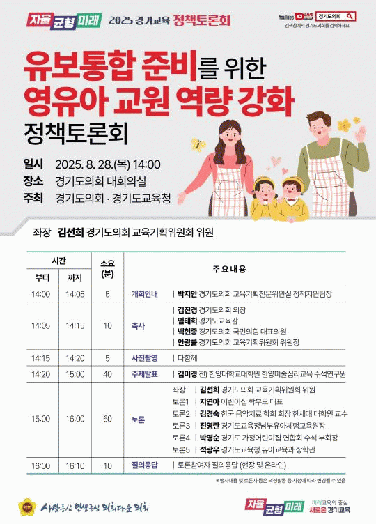 [Áö¿ªÁ¤Ä¡] ±è¼±Èñ ÀÇ¿ø, À¯º¸ÅëÇÕ Áغñ¸¦ À§ÇÑ ¿µÀ¯¾Æ ±³¿ø ¿ª·® °­È­, 28ÀÏ Á¤Ã¥ Åä·Ðȸ °³ÃÖ |2025. 08.26