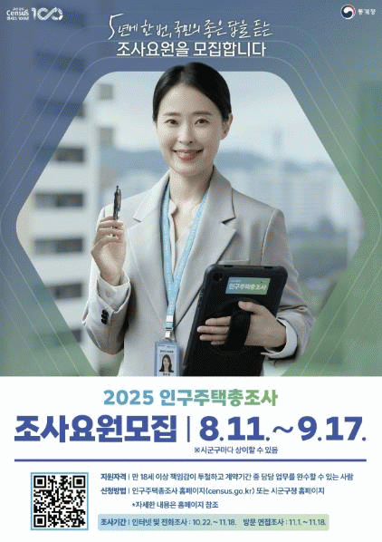 [NWS¹æ¼Û=Çѽ¸ñ ±âÀÚ]Àǿսô ¿À´Â 10¿ù 22ÀϺÎÅÍ 11¿ù 18ÀϱîÁö ½Ç½ÃµÇ´Â ¡®2025 Àα¸ÁÖÅÃÃÑÁ¶»ç¡¯¿¡ Âü¿©ÇÒ Á¶»ç¿ä¿ø 67¸íÀ» ¸ðÁýÇÑ´Ù°í ¹àÇû´Ù. Àα¸ÁÖÅÃÃÑÁ¶»ç´Â Åë°èûÀÌ ÁÖ°üÇÏ´Â ±¹°¡ ´ÜÀ§ÀÇ Åë°èÁ¶»ç·Î 5³â¸¶´Ù Àα¸¡¤°¡±¸¡¤ÁÖ¡¦