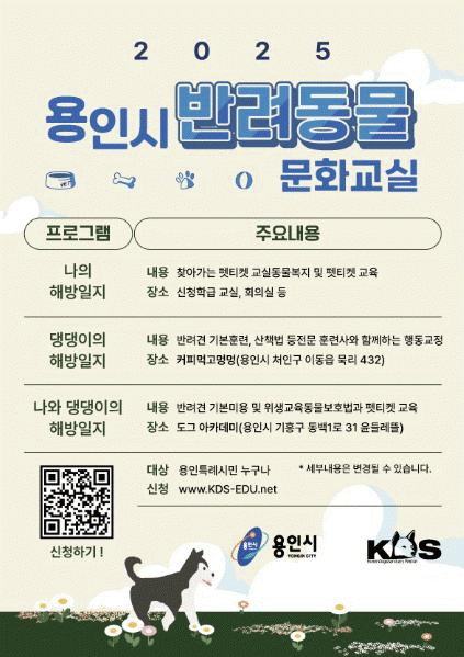 [»çȸ] ¿ëÀÎÆ¯·Ê½Ã, ¹Ý·Áµ¿¹° ±³À°¡¤»ó´ã ¹®È­±³½Ç Âü°¡ÀÚ ¸ðÁý |2025. 08.26