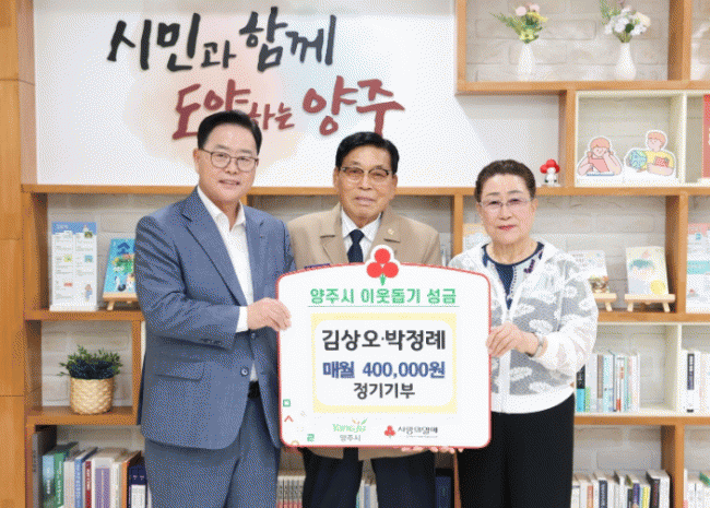 [NWS¹æ¼Û=Çѽ¸ñ ±âÀÚ]¾çÁֽô 20ÀÏ, ÂüÀüÀ¯°øÀÚÀÎ ±è»ó¿À(81)¾¾¿Í ¹è¿ìÀÚ ¹ÚÁ¤·Ê(73)¾¾°¡ ¸Å¿ù 40¸¸¿ø¾¿ ÀÌ¿ôµ½±â ¼º±ÝÀ» Á¤±âÀûÀ¸·Î ±âŹÇϱâ·Î ¾àÁ¤Çß´Ù°í ¹àÇû´Ù. À̹ø ¼º±ÝÀº ±è»ó¿À ¾¾ ºÎºÎ°¡ ±ºÀבּÝÀÇ ÀϺθ¦ Áö¿ª»çȸ¿¡ ȯ¿ø¡¦