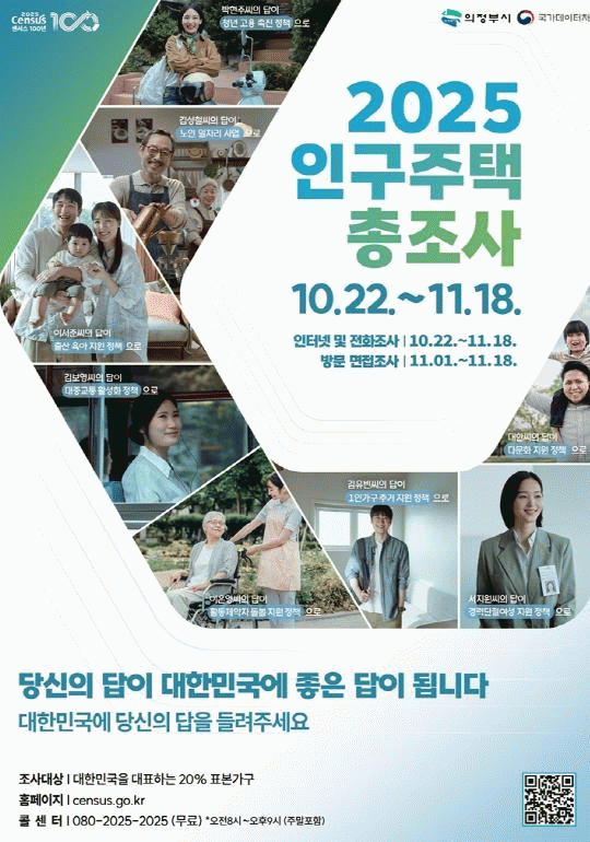 [NWS¹æ¼Û=Çѽ¸ñ ±âÀÚ]ÀÇÁ¤ºÎ½Ã´Â ±¹°¡µ¥ÀÌÅÍó(¿¾ Åë°èû)¿Í ÇÔ²² 10¿ù 22ÀϺÎÅÍ 11¿ù 18ÀϱîÁö ¡®2025 Àα¸ÁÖÅÃÃÑÁ¶»ç¡¯¸¦ ½Ç½ÃÇÑ´Ù. Àα¸ÁÖÅÃÃÑÁ¶»ç´Â 5³â ÁÖ±âÀÇ ±¹°¡ ÁöÁ¤ Åë°èÁ¶»ç´Ù. ´ëÇѹα¹ ¿µÅä ³» °ÅÁÖÇÏ´Â Àα¸¿Í ÁÖÅÃÀÇ ±Ô¡¦
