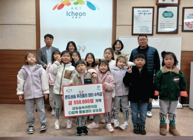 [NWS¹æ¼Û=Çѽ¸ñ ±âÀÚ]ÀÌõ½Ã ÀåÈ£¿øÀ¾Àº »ó½Â½£¼Ó¾î¸°ÀÌÁý°ú ´ÙÇÔ²² µ¹º½¼¾ÅÍ »ó½ÂÁ¡ÀÌ 11¿ù 12ÀÏ, ÀåÈ£¿øÀ¾ÇàÁ¤º¹Áö¼¾ÅÍ¿¡ ¾î¸°À̵é°ú ÇÔ²² ¹æ¹®ÇÏ¿© ¡®¿Âµµ»ó½Â ¿ì¸®µéÀÇ ÀåÅÍ¡¯ ¼öÀÍ±Ý 55¸¸ ¿øÀ» Àü´ÞÇß´Ù°í ¹àÇû´Ù. »ó½Â½£¼Ó¾î¸°ÀÌ¡¦