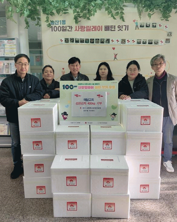 [NWS¹æ¼Û=Çѽ¸ñ ±âÀÚ]ÀÇÁ¤ºÎ½Ã ¼Û»ê1µ¿Áֹμ¾ÅÍ´Â 12¿ù 1ÀÏ ¿¹´à±³È¸°¡ °ü³» Ãë¾à°èÃþÀ» Áö¿øÇϱâ À§ÇØ ±èÀå±èÄ¡(ÃÑ 400kg)¸¦ ±âŹÇß´Ù°í ¹àÇû´Ù. À̹ø ±èÀå±èÄ¡´Â ¿¹´à±³È¸ ¼ºµµµéÀÌ Á÷Á¢ ´ã±Ù °ÍÀ¸·Î, °Ü¿ïö ½Ä»ç Áغñ°¡ ¾î·Á¿î µ¶°Å¡¦