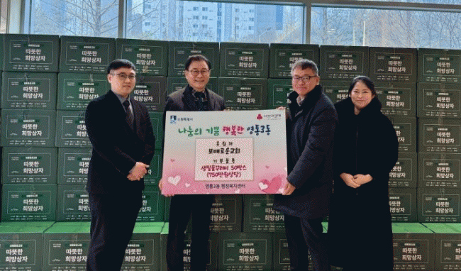 [»çȸ] ¼ö¿ø½Ã ¿µÅ뱸 ¿µÅë3µ¿¿¡ º¸¹è·Î¿î±³È¸ ¼³ ¸íÀý ¸Â¾Æ µû¶æÇÑ Èñ¸Á»óÀÚ 50¹Ú½º Àü´Þ |2026. 02.11