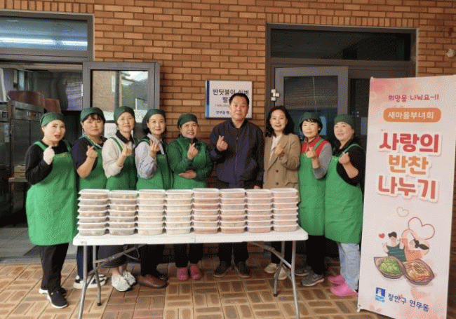 [NWS¹æ¼Û=Çѽ¸ñ ±âÀÚ]¼ö¿ø½Ã Àå¾È±¸ ¿¬¹«µ¿ »õ¸¶À»ºÎ³àȸ´Â Áö³­ 20ÀÏ ¡®»ç¶ûÀÇ ¹ÝÂù ³ª´©±â¡¯ ºÀ»ç¸¦ ÅëÇØ Áö¿ª ³» µ¶°Å³ëÀÎ, Ãë¾à°èÃþ µî ¾î·Á¿î ÀÌ¿ô 25°¡±¸¿¡ µû¶æÇÑ ¹ÝÂùÀ» Àü´ÞÇß´Ù. À̹ø ºÀ»ç´Â Áö¿ª»çȸ ³ª´® ¹®È­ È®»ê°ú ¼Ò¿Ü¡¦