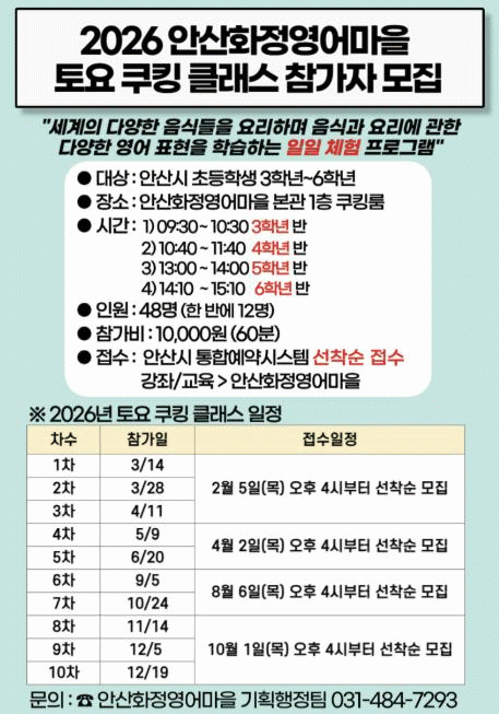 [»çȸ] ¾È»ê½Ã È­Á¤¿µ¾î¸¶À», Åä¿ä ÄíÅ· Ŭ·¡½º ¿î¿µ¡¦ ¿ä¸® üÇè Ȱµ¿ |2026. 01.30