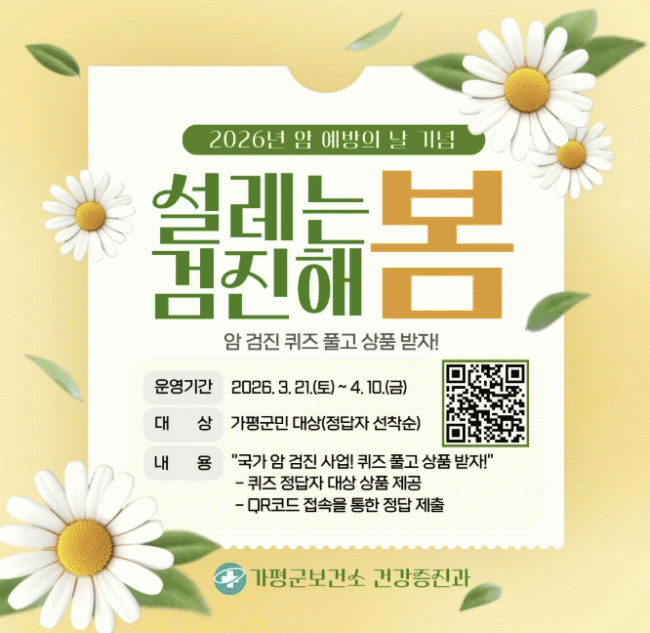[»çȸ] °¡Æò±º, '¾Ï ¿¹¹æÀÇ ³¯ ±â³ä' ¾Ï °ËÁø ÄûÁî À̺¥Æ® ½Ç½Ã |2026. 03.26