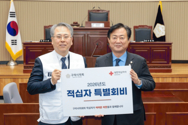 [NWS¹æ¼Û=Çѽ¸ñ ±âÀÚ]±¸¸®½ÃÀÇȸ°¡ 1¿ù 15ÀÏ ±¸¸®½ÃÀÇȸ ÀÇÀå½Ç¿¡¼­ ´ëÇÑÀû½ÊÀÚ»ç °æ±âÁö»ç¿¡ 2026³âµµ Àû½ÊÀÚ Æ¯º°È¸ºñ¸¦ Àü´ÞÇÏ¸ç ¾î·Á¿î ÀÌ¿ôÀ» À§ÇÑ µû¶æÇÑ ³ª´® Ȱµ¿¿¡ µ¿ÂüÇß´Ù. À̳¯ Àü´Þ½Ä¿¡´Â ½Åµ¿È­ ÀÇÀå, ´ëÇÑÀû½ÊÀÚ»ç ¿ì±¤¡¦