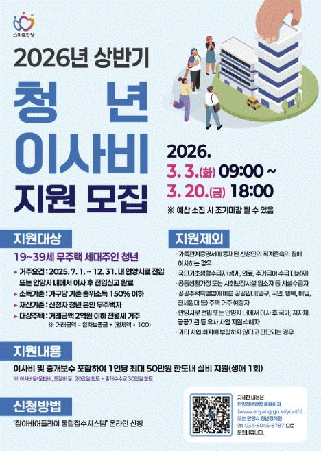 [»çȸ] ¾È¾ç½Ã, û³â°¡±¸ ÀÌ»çºñ ÃÖ´ë 50¸¸¿ø Áö¿ø¡¦20ÀϱîÁö ½Åû °¡´É |2026. 03.06