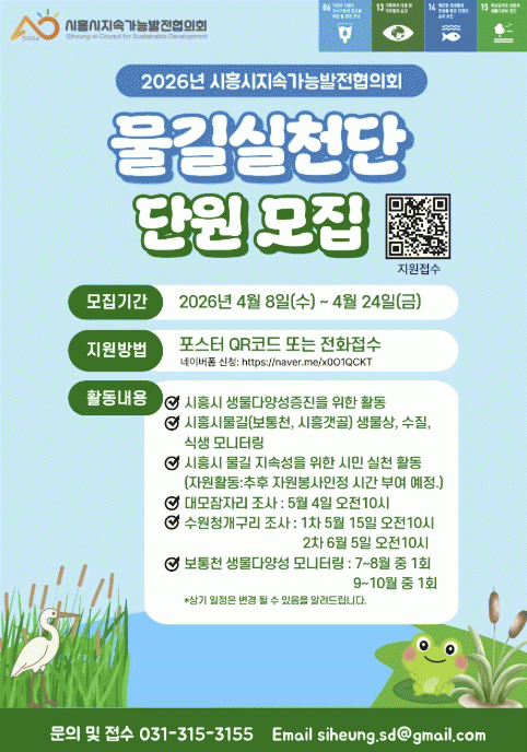 [NWS¹æ¼Û=Çѽ¸ñ ±âÀÚ]½ÃÈï½ÃÁö¼Ó°¡´É¹ßÀüÇùÀÇȸ´Â ½ÃÈï½Ã ¹°±æ(º¸Åëõ¤ý½ÃÈï°¹°ñ)ÀÇ »ýÅ ÇöȲÀ» ÆÄ¾ÇÇÏ°í ½Ã¹ÎµéÀÇ È¯°æ ÀνÄÀ» ³ôÀ̱â À§ÇØ ¡®2026³â ¹°±æ½Çõ´Ü¡¯ ´Ü¿ø 10¸íÀ» ¿À´Â 4¿ù 24ÀϱîÁö ¸ðÁýÇÑ´Ù. À̹ø Ȱµ¿Àº ½Ã¹ÎÀÌ Á÷Á¢¡¦