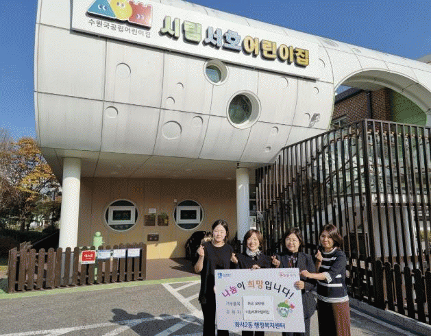 [NWS¹æ¼Û=Çѽ¸ñ ±âÀÚ]¼ö¿ø½Ã ÆÈ´Þ±¸ È­¼­2µ¿¿¡ À§Ä¡ÇÑ ½Ã¸³¼­È£¾î¸°ÀÌÁýÀº ´Ù°¡¿À´Â Ãß¿î °Ü¿ïÀ» ¾ÕµÎ°í °ü³» µµ¿òÀÌ ÇÊ¿äÇÑ ¾î·Á¿î ÀÌ¿ôµé¿¡°Ô µû¶æÇÑ ¸¶À½À» ÀüÇϱâ À§ÇØ Áö³­ 5ÀÏ È­¼­2µ¿ ÇàÁ¤º¹Áö¼¾ÅÍ¿¡ ¼º±ÝÀ» Àü´ÞÇß´Ù. À̳¯ Àü´Þ¡¦