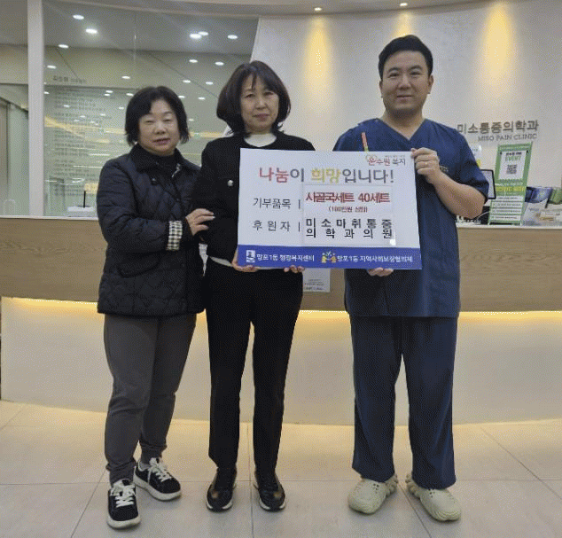 [NWS¹æ¼Û=Çѽ¸ñ ±âÀÚ]¼ö¿ø½Ã ¿µÅ뱸 ¸ÁÆ÷1µ¿Àº Áö³­ 5ÀÏ, ¹Ì¼Ò¸¶ÃëÅëÁõÀÇÇаúÀÇ¿øÀÌ ¹ÎÁ· °íÀ¯ÀÇ ¸íÀý ¼³À» ¸Â¾Æ ¸ÁÆ÷1µ¿ Ãë¾à°èÃþ°ú µµ¿òÀÌ ÇÊ¿äÇÑ ÀÌ¿ôÀ» À§ÇØ 100¸¸¿ø »ó´çÀÇ »ç°ñ±¹ ¼¼Æ® 40°³¸¦ ±âºÎÇß´Ù°í ¹àÇû´Ù. À̹ø ±âºÎ´Â °Ç¡¦
