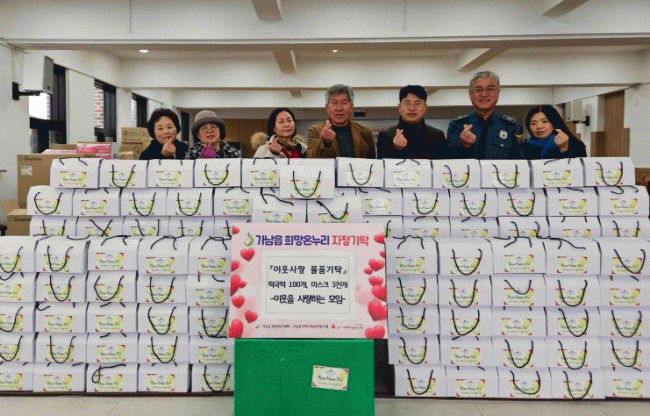[NWS¹æ¼Û=Çѽ¸ñ ±âÀÚ]¿©Áֽà °¡³²À¾ ÇàÁ¤º¹Áö¼¾ÅÍ´Â Áö³­ 11ÀÏ, Áö¿ª ºÀ»ç´ÜüÀÎ ¡®ÀÌ¿ôÀ» »ç¶ûÇÏ´Â ¸ðÀÓ¡¯À¸·ÎºÎÅÍ °ü³» Ãë¾à°èÃþÀ» À§ÇÑ ¶±±¹¶± 100°³¿Í ¸¶½ºÅ© 3,000¸Å¸¦ Àü´Þ¹Þ¾Ò´Ù°í ¹àÇû´Ù. À̳¯ ±âŹµÈ ¹°Ç°Àº ¼³ ¸íÀýÀ» ¾ÕµÎ°í¡¦