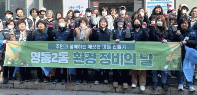 [NWS¹æ¼Û=Çѽ¸ñ ±âÀÚ]¼ö¿ø½Ã ¿µÅ뱸 ¿µÅë3µ¿ ÇàÁ¤º¹Áö¼¾ÅÍ´Â Áö³­ 12ÀÏ »õº½À» ¸Â¾Æ ÄèÀûÇÏ°í ±ú²ýÇÑ ¸¶À» ȯ°æ Á¶¼ºÀ» À§ÇØ ÅëÀåÇùÀÇȸ¿Í ÇÔ²² ¡®»õº½¸ÂÀÌ ÀÏÁ¦ ´ëû¼ÒÀÇ ³¯¡¯À» ½Ç½ÃÇß´Ù. À̹ø Çà»ç¿¡´Â ¿µÅë3µ¿Àå°ú ÅëÀåÇùÀÇȸ, µ¿ ¡¦