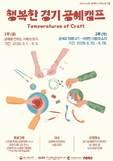 [NWS¹æ¼Û=Çѽ¸ñ ±âÀÚ]Çѱ¹µµÀÚÀç´ÜÀÌ ¿À´Â 5¿ù 1ÀϺÎÅÍ °æ±â°ø¿¹Ã¢ÀÛÁö¿ø¼¾ÅÍ(¿©ÁÖ) ÀÏ¿ø¿¡¼­ üÇ衤Àü½Ã¡¤À̺¥Æ®¸¦ °áÇÕÇÑ Âü¿©Çü ÇÁ·Î±×·¥ ¡®2026 ÇູÇÑ °æ±â °ø¿¹ Ä·ÇÁ¡¯¸¦ °³ÃÖÇÑ´Ù. À̹ø Çà»ç´Â ¹®È­Ã¼À°°ü±¤ºÎ°¡ ÁÖÃÖÇϰí Çѱ¹°ø¡¦