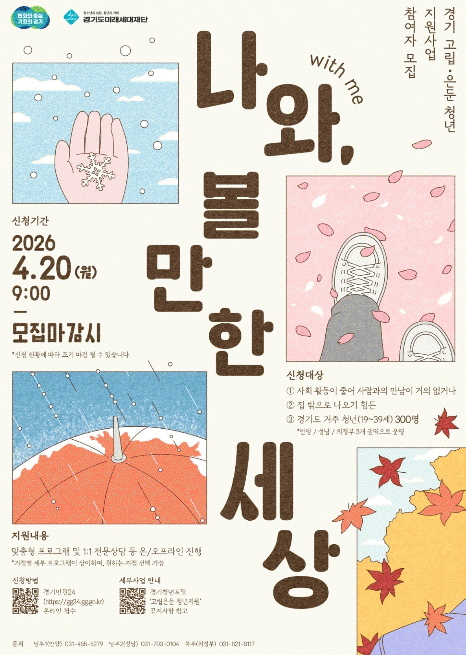 [»çȸ] °æ±âµµ, °í¸³¡¤ÀºµÐ û³â Áö¿ø»ç¾÷ '³ª¿Í(with me), º¼¸¸ÇÑ ¼¼»ó' Âü¿©ÀÚ ¸ðÁý |2026. 04.20