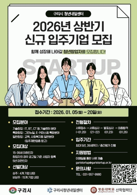 [»çȸ] ±¸¸®½Ã, 2026³â »ó¹Ý±â 'û³â³»Àϼ¾ÅÍ' ÀÔÁÖ±â¾÷ ¸ðÁý |2026. 01.05