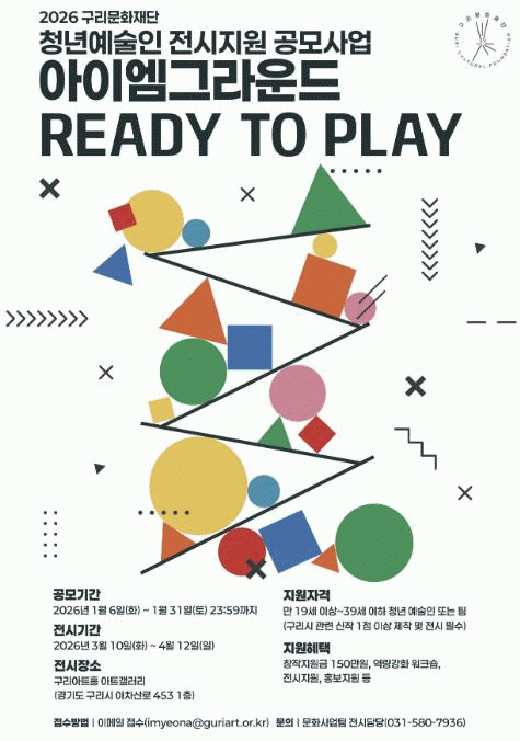 [»çȸ] ±¸¸®¹®È­Àç´Ü, 2026 û³â ¿¹¼úÀÎ Àü½ÃÁö¿ø °ø¸ð»ç¾÷ '¾ÆÀÌ¿¥ ±×¶ó¿îµå, Ready tO Play' °ø¸ð ÁøÇà |2026. 01.05
