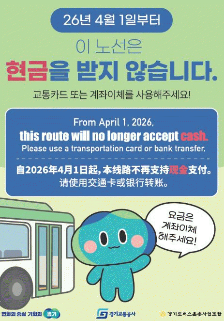 [»çȸ] °æ±âµµ, 'Çö±Ý¾ø´Â ¹ö½º' 4¿ù 1ÀϺÎÅÍ 80°³ ³ë¼±À¸·Î È®´ë ¿î¿µ |2026. 03.05