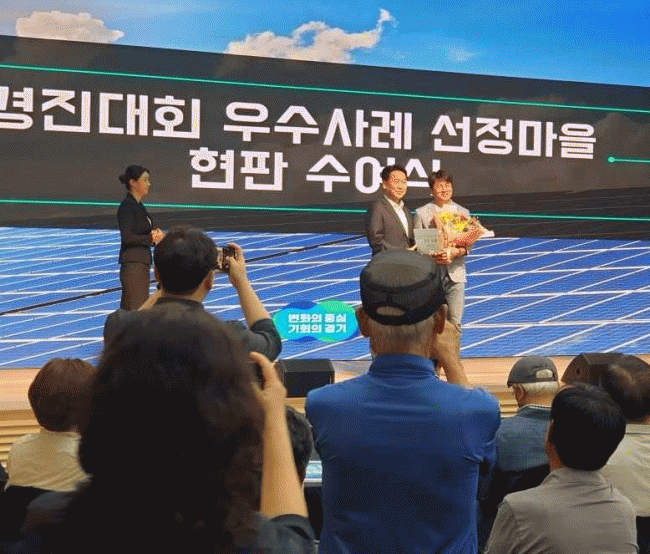 [NWS¹æ¼Û=Çѽ¸ñ ±âÀÚ]ÆòÅýà ȣÁ¤¸¶À»ÀÌ Áö³­ 9¿ù 29ÀÏ °æ±âÀ¶ÇÕŸ¿î¿¡¼­ ÁøÇàµÈ ¡®°æ±â RE100 ¸¶À» ¿ì¼ö»ç·Ê °æÁø´ëȸ¡¯¿¡¼­ ¿¡³ÊÁö ÀÚ¸³¸¶À» ¿ì¼ö¸¶À»·Î ¼±Á¤µÆ´Ù. °æÁø´ëȸ´Â ¿ì¼ö¸¶À»·Î ¼±Á¤µÈ ¸¶À»(¾ÈÁßÀ¾ È£Á¤¸¶À»)¿¡ ÇöÆÇÀ» Àü´Þ¡¦
