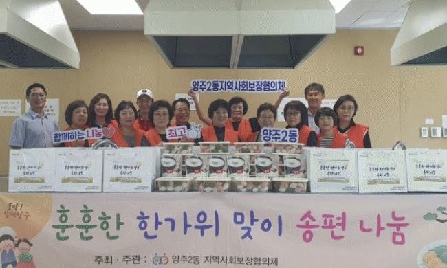 [NWS¹æ¼Û=Çѽ¸ñ ±âÀÚ]¾çÁֽà ¾çÁÖ2µ¿ Áö¿ª»çȸº¸ÀåÇùÀÇü°¡ ÃÖ±Ù Ãß¼®À» ¸Â¾Æ °ü³» Ãë¾à°èÃþ 100°¡±¸¸¦ ´ë»óÀ¸·Î ¼ÛÆíÀ» Àü´ÞÇß´Ù. À̹ø ³ª´®Àº ¸¶À»º¹Áö»ç¾÷ ¡®ÈÆÈÆÇÑ ÇѰ¡À§ ¸ÂÀÌ ¼ÛÆí ³ª´®¡¯ÀÇ ÀÏȯÀ¸·Î, ¹ÎÁ· °íÀ¯ ¸íÀýÀÎ Ãß¼®À» ¸Â¡¦