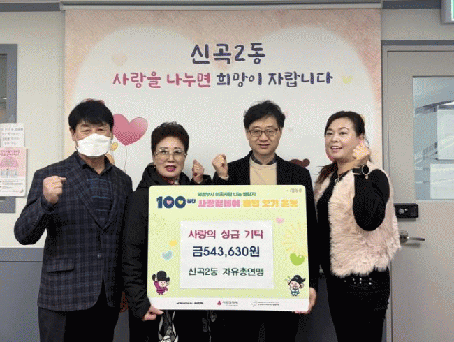 [NWS¹æ¼Û=Çѽ¸ñ ±âÀÚ]ÀÇÁ¤ºÎ½Ã ½Å°î2µ¿Áֹμ¾ÅÍ´Â 11¿ù 19ÀÏ ½Å°î2µ¿ ÀÚÀ¯ÃÑ¿¬¸ÍÀÌ Áö¿ª Ãë¾à°èÃþÀ» À§ÇØ ¼º±Ý 54¸¸3õ630¿øÀ» ±âŹÇß´Ù°í ¹àÇû´Ù. ½Å°î2µ¿ ÀÚÀ¯ÃÑ¿¬¸ÍÀº ¸Å³â ÀÌ¿ôµ½±â ¼º±Ý ±âŹ, ¹è½Ä ºÀ»ç µî ´Ù¾çÇÑ ºÀ»çȰµ¿À» ²ÙÁØ¡¦