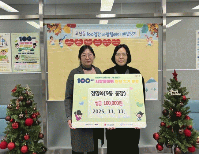 [»çȸ] ÀÇÁ¤ºÎ½Ã Àå¾Ïµ¿ ÅëÀåÇùÀÇȸ, ÀÌ¿ô»ç¶û ¼º±Ý 100¸¸ ¿ø Àü´Þ·Î 100Àϰ£ »ç¶û¸±·¹ÀÌ À̾ |2025. 11.20