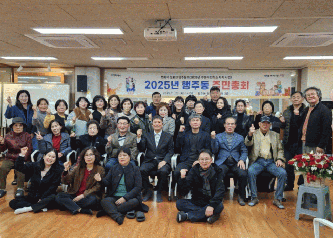 [NWS¹æ¼Û=Çѽ¸ñ ±âÀÚ]°í¾çƯ·Ê½Ã ´ö¾ç±¸ ÇàÁÖµ¿ ÁÖ¹ÎÀÚġȸ´Â Áö³­ 25ÀÏ, ÇàÁÖµ¿ ÇàÁ¤º¹Áö¼¾ÅÍ 3Ãþ Å«¸¶·ç¹æ¿¡¼­ ¡®2025³â ÇàÁÖµ¿ ÁÖ¹ÎÃÑȸ¡¯¸¦ ¼ºÈ²¸®¿¡ °³ÃÖÇß´Ù. ÁÖ¹ÎÃÑȸ´Â ÁֹεéÀÌ Á÷Á¢ ¸¶À»ÀÇ Çö¾ÈÀ» ¹ß±¼ÇÏ°í ¹ßÀü¹æÇâÀ» ³íÀÇÇÏ¡¦