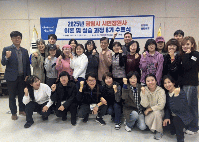 [NWS¹æ¼Û=Çѽ¸ñ ±âÀÚ]±¤¸í½Ã´Â Áö³­ 21Àϰú 26ÀÏ ÀÌÆ²¿¡ °ÉÃÄ ¡®2025³â ½Ã¹ÎÁ¤¿ø»ç ¾ç¼º±³À°¡¯ À̷С¤½Ç½À°úÁ¤°ú Àü¹®°úÁ¤ ¼ö·á½ÄÀ» °³ÃÖÇß´Ù. À̹ø ±³À° °úÁ¤À» ¸¶Ä¡¸ç ¿¹ºñ ½Ã¹ÎÁ¤¿ø»ç 22¸í°ú ½Ã¹ÎÁ¤¿ø»ç·Î Ȱµ¿ÇÏ°Ô µÉ 24¸íÀ» »õ·Ó°Ô¡¦