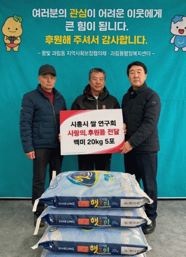[NWS¹æ¼Û=Çѽ¸ñ ±âÀÚ]½ÃÈï½Ã °ú¸²µ¿ ÇàÁ¤º¹Áö¼¾ÅÍ¿¡ Áö³­ 2¿ù 5ÀÏ ½ÃÈï½Ã½Ò¿¬±¸È¸°¡ ¹æ¹®ÇØ ¸íÀýÀ» ¾ÕµÎ°í ¹é¹Ì 20kg 5Æ÷¸¦ ±âŹÇϸç ÀÌ¿ô»ç¶ûÀ» ½ÇõÇß´Ù. À̹ø ±âºÎ´Â ¸íÀýÀ» ¾ÕµÎ°í °æÁ¦Àû ¾î·Á¿òÀ» °Þ´Â °ü³» Àú¼Òµæ Áֹε鿡°Ô µû¡¦