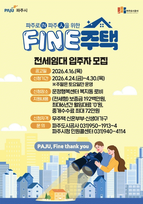 [»çȸ] ÆÄÁÖ½Ã, ÆÄÀÎ(FINE)ÁÖÅà ÀÔÁÖÀÚ ¸ðÁý °ø°í |2026. 04.16