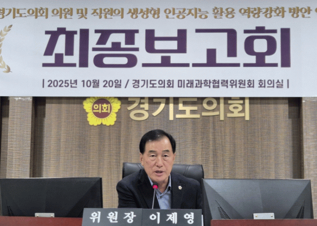 [Áö¿ªÁ¤Ä¡] °æ±âµµÀÇȸ ¹Ì·¡°úÇÐÇù·ÂÀ§¿øÈ¸, ÀÇ¿ø ¹× Á÷¿ø ´ë»ó ¡®»ý¼ºÇü ÀΰøÁö´É ¿ª·®°­È­¡¯ ÃÖÁ¾º¸°íȸ °³ÃÖ |2025. 10.20