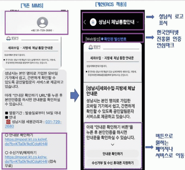 [NWS¹æ¼Û=Çѽ¸ñ ±âÀÚ]¼º³²½Ã´Â ÀÌ´ÞºÎÅÍ Â÷¼¼´ë¹®ÀÚ¼­ºñ½º(RCS: Rich Communication Service)¸¦ µµÀÔÇØ ü³³ÅëÇվȳ» ¹®ÀÚ ¼­ºñ½ºÀÇ ½Å·Ú¼º°ú º¸¾È¼ºÀ» ÇÑÃþ °­È­Çß´Ù°í ¹àÇû´Ù. ¼º³²½Ã´Â 2018³â Àü±¹ ÃÖÃʷΠü³³ÅëÇվȳ» ¸ð¹ÙÀÏ ¹®ÀÚ¡¦