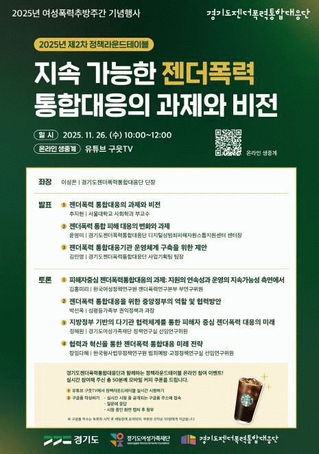 [»çȸ] °æ±âµµ Á¨´õÆø·Â ´ëÀÀ, Áö¼Ó°¡´ÉÇÑ °úÁ¦¿Í ºñÀü ¸ð»ö¡¦26ÀÏ Á¤Ã¥¶ó¿îµå Å×À̺í |2025. 11.25