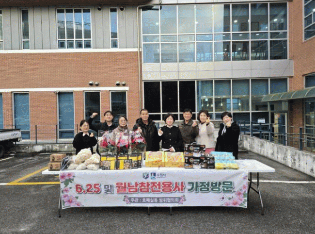[NWS¹æ¼Û=Çѽ¸ñ ±âÀÚ]¼ö¿ø½Ã ±Ç¼±±¸ È£¸Å½Çµ¿ ¹æÀ§ÇùÀÇȸ´Â Áö³­ 11ÀÏ, ¿¬¸»¿¬½Ã¸¦ ¾ÕµÎ°í 6.25 ÀüÀï ¹× ¿ù³²Àü ÂüÀüÀ¯°øÀÚ 5 °¡±¸¸¦ ¹æ¹®Çϰí À§¹®Ç°À» Àü´ÞÇß´Ù. ¹æÀ§ÇùÀÇȸ À§¿øµéÀº ÂüÀüÀ¯°øÀڵ鿡°Ô °¨»ç¿Í Á¸°æÀÇ ¸¶À½À» ´ã¾Æ È­¡¦