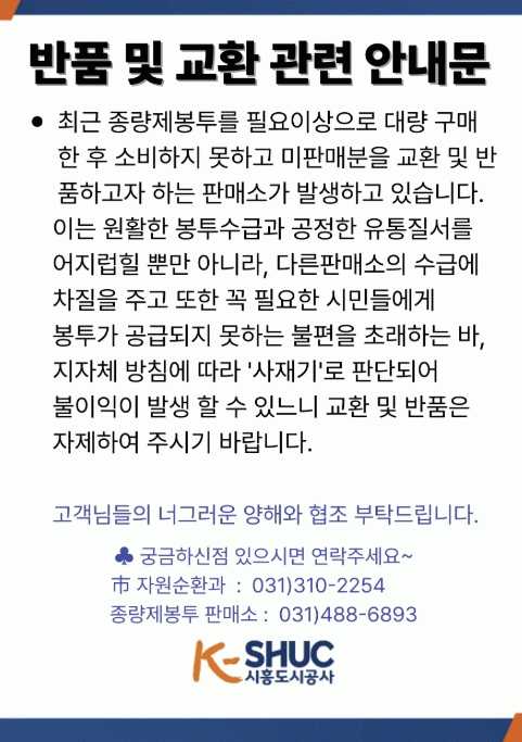 [»çȸ] ½ÃÈï½Ã, Á¾·®Á¦ºÀÅõ °ø±Þ ¾ÈÁ¤È­¡¦ ÆÇ¸Å¼Ò ¹Ýǰ ¿äû ¼âµµ |2026. 04.03
