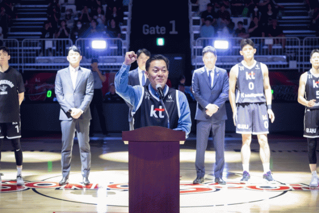 [NWS¹æ¼Û=¼­Çö¼® ±âÀÚ]ÀÌÀçÁØ ¼ö¿øÆ¯·Ê½ÃÀåÀÌ 4ÀÏ ¼ö¿øKT¼Ò´ÐºÕ¾Æ·¹³ª¿¡¼­ ¿­¸° ¡®2025-2026 ÇÁ·Î³ó±¸ KBL Ȩ °³¸·Àü¡¯¿¡¼­ °³¸·¼±¾ðÀ» Çß´Ù. ¼ö¿øKT¼Ò´ÐºÕ°ú ºÎ»êKCCÀÇ È¨ °³¸·Àü¿¡¼­ Ãà»ç¸¦ ÇÑ ÀÌÀçÁØ ½ÃÀåÀº ¡°½Ã¹Î°ú ÇÔ²² ¼ö¿øKT ¼Ò¡¦