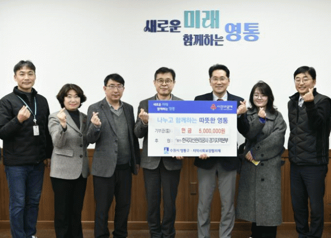 [NWS¹æ¼Û=Çѽ¸ñ ±âÀÚ]¼ö¿ø½Ã ¿µÅ뱸´Â Áö³­ 24ÀÏ Çѱ¹ÀÚ»ê°ü¸®°ø»ç °æ±âÁö¿ªº»ºÎ¿¡¼­ °ü³» °æÁ¦ÀûÀ¸·Î ¾î·Á¿òÀ» °Þ´Â ÀÌ¿ôÀ» À§ÇØ ¼º±Ý 500¸¸ ¿øÀ» ±âºÎÇß´Ù°í ¹àÇû´Ù. Çѱ¹ÀÚ»ê°ü¸®°ø»ç(Ä·ÄÚ) °æ±âÁö¿ªº»ºÎ´Â Áö³­ 2023³âºÎÅÍ È­ÀåÁö,¡¦